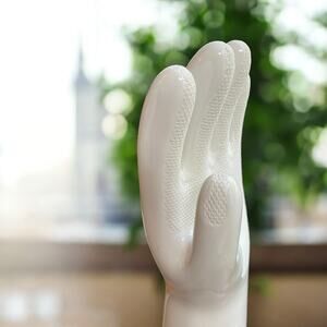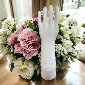 This latex left hand glove mold was made by one of the top four industrial porcelain makers, general porcelain, from Trenton, New Jersey.