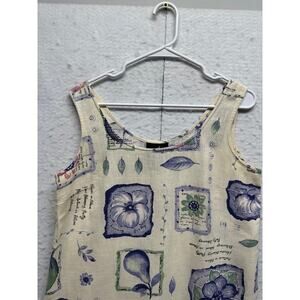Vtg Positive Attitude 100% Linen Sleeveless Shift Dress Floral Botanical Print M