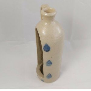 Vtg Pottery Salt Glaze Blue Candle Jug/Hurricane Lamp 8.5" country cottage core