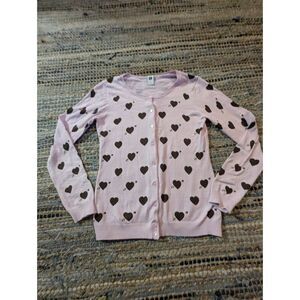 Vtg Powder Pink Button Up Cardigan M Black Hearts Valentine's Crew Neck Y2k