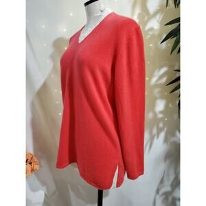 Vtg QVC Precious Fibers Womens V-Neck Cashmere Sweater Size M Pink Relaxed Classic