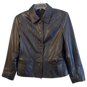 Vtg Preston & York Women's Black Lined Soft Leather Jacket Sz Petite S Y2K Punk