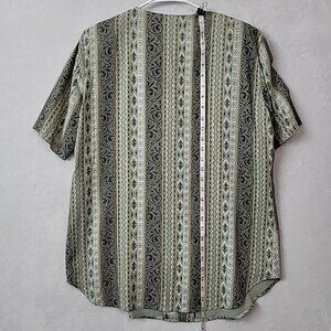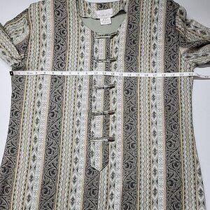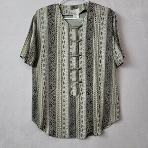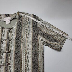 Vtg Pride & Joy Womens Size 12P Green Swirl Geometric Design Cross Over Buttons