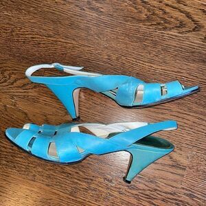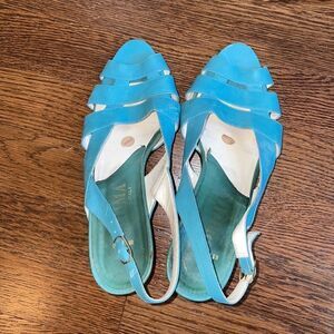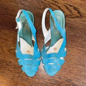 Vtg Prima turquoise/aqua blue low heeled sandals
