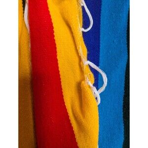 * Features: Very large striped pueblo blanket; Bright n colorful; Great for picnics, beach or bed throw. Made in India; Acrylic/Mixed Fiber Very soft feel. Handmade