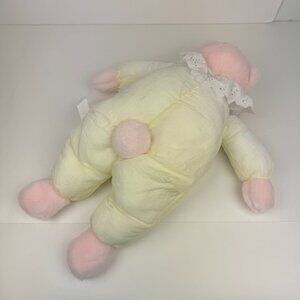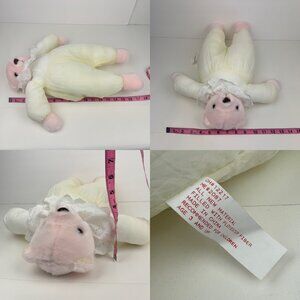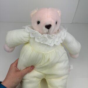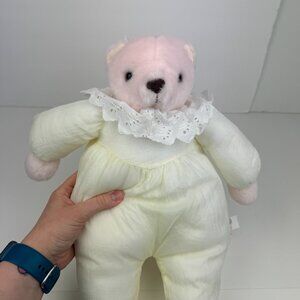Vtg Puffy Teddy Bear Pink Plush White Yellow Outfit Parachute Body Nylon w Lace