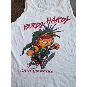 Vtg Punk Garfield Cancun Mexico Tank Top White 90's Punk Rock Party Hardy