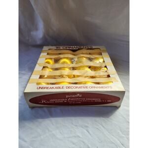 Excellent pre-owned condition vintage set of 16 satin ornaments by Pyramid with original box. Please see pictures and feel free to let me know if you have any questions.