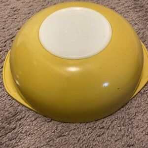 Dish is in used condition with some scratches and marks to the bowl. No major cracks or chips. Lid does have a chip on the inside ring. Please see pictures. Color is a yellow almost mustard