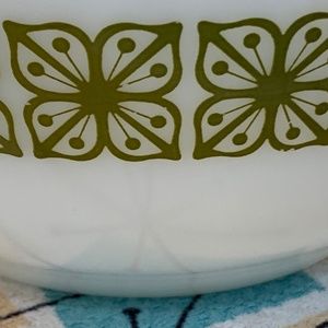 Vintage Pyrex 1.5 quart Mixing Bowl, Autumn Floral (Verde) 402 + NEW Retro Avocado Potholder
