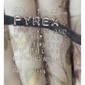 This vintage Pyrex glass pie baking dish is perfect for all occasions. The round, smooth rim plate measures 9 inches or 23 cm in diameter and features a clear pressed glass design. The dish is an original vintage piece from the Pyrex brand, model 209 Clear.