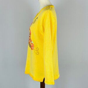 Vtg Quacker Factory Butterfly Sweater Sz S Yellow Sequin Beaded Fairycore Beach