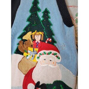 Vtg Quacker Factory Christmas Sweater Santa Reindeer Trees The North Pole Sz 1X