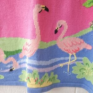 Vtg Quacker Factory Flamingo Knit Top Tunic XL Pink Tropical Retro Cruise Artsy
