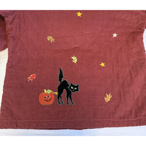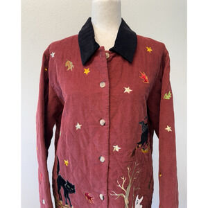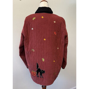 Vtg Quacker Factory Halloween Barn Jacket Embroidered Corduroy Womens Size L