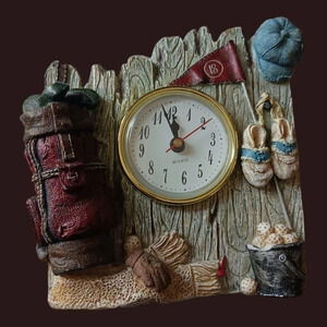 Vtg Quartz golf theme desk shelf table mantle clock with arabic numerals multicolor heavy weight in great condition without box from smoke and pet free home.0396