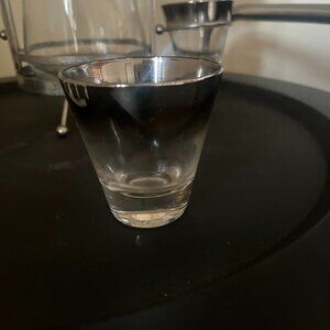 This elegant cocktail set includes a sleek glass pitcher and six matching glasses, each featuring a sophisticated silver fade design. The included stand provides a stylish display and convenient storage solution, making it an excellent addition to any home bar collection.