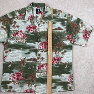 Vtg Quicksilver Hawaiian Loop Camp Shirt Med 90s Resort Tribal Palm Trees Art
