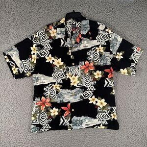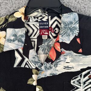 Vtg Quicksilver Shirt Mens L Floral Tribal Surf Rayon Made In USA Loop Collar