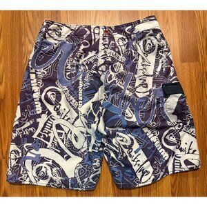 Vtg Quiksilver Board Short Mens 32 10" Swim Trunks Logo AOP Grunge