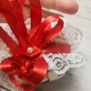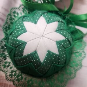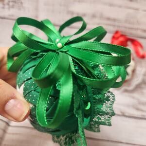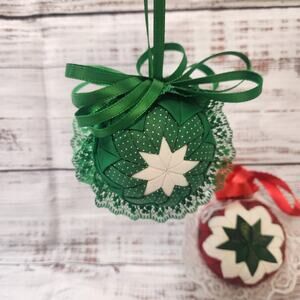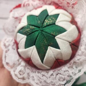 Vtg Quilted Christmas Ornaments Red Green White Star Pattern Ribbon Handmade