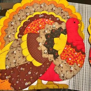 Vtg. Quilted Turkey Handmade Fall Thanksgiving Decor Placemats. Set Of Two. Perfect condition, appears unused! Smoke and pet free home.