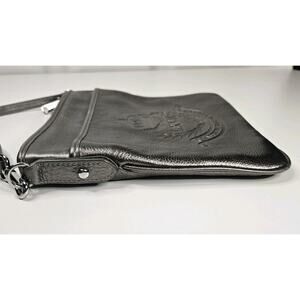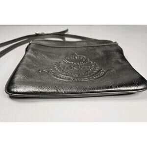 Vtg RALPH LAUREN Embossed Logo Leather Crossbody Adjustable Strap Silver Small
