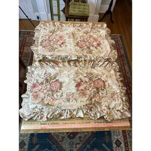 Vtg RALPH LAUREN GUINEVERE KING Ruffled Flat Fitted Sheet Set 2 Shams 4 Pc Set