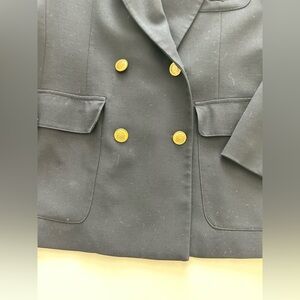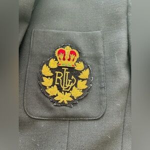 Vtg RALPH LAUREN Jacket Blazer 100a% Wool Oversized CREST & CROWN Size 6 Navy