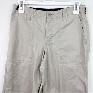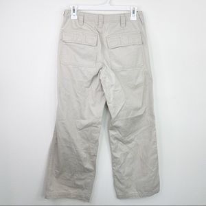 Vintage RALPH by Ralph Lauren beige khaki wide leg pants. Belt loops. Button Fly. 2 front slant pockets, 2 velcro flap back pockets.