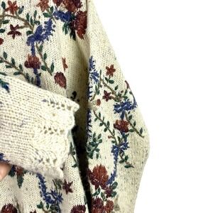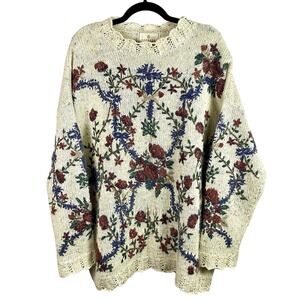 Vtg RARE Express Tricot Womens Large Sweater Floral Lace Crew Neck Pullover L