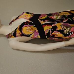 Vtg ROBBIE BEE Vibrant Multicolor Floral Mod Satin Halter Silk Dress