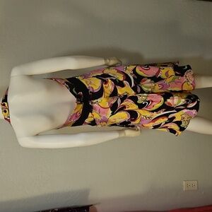 Vtg ROBBIE BEE Vibrant Multicolor Floral Mod Satin Halter Silk Dress