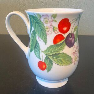 Vintage ROY KIRKHAM Sweet Cherry Fine Bone China Footed Cup / Mug ~ Made in England 1999