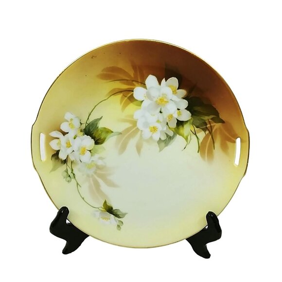 Vtg RS Germany Floral Porcelain Plate Decorative 9.75" with Gold Rim & Handles