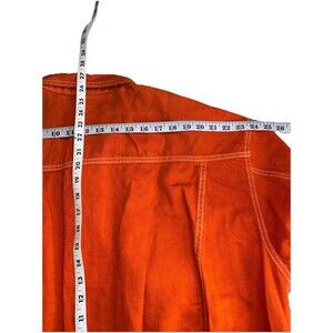 The product is a vintage Rubber Soul men's XXL orange denim trucker jacket made in the USA. It is crafted from cotton material with a regular fit and features a unique orange color. The stylish jacket is perfect for men looking for a cool and sexy denim coat that is both high-quality and uniquely vintage. The brand name, size, and country of origin are all key aspects that add to the overall appeal and authenticity of this eye-catching piece of outerwear.