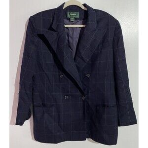 Vtg Ralph Lauren Blazer 14 Blue Wool Windowpane Double Breast Classic Office USA