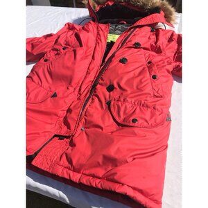 Vtg Ralph Lauren Faux Fur Red Jacket Coat Parka Puffer Goose Down Women’s S M