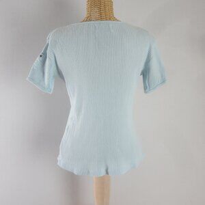 Vtg Ralph Lauren Jeans Co Womens M Blue Cotton Rib Knit Tee Shirt Y2K Peru Sleeve Pocket