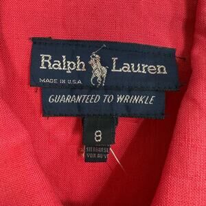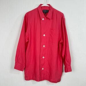 Vtg Ralph Lauren L/S Button up Tunic Top Size 8 Pink 100% Linen