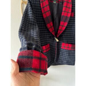 Vtg Ralph Lauren Lambs New Wool Red Tartan Plaid Festive Blazer Horn Toggle M