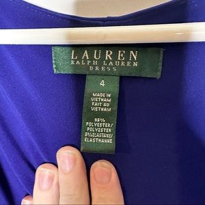 Vtg Ralph Lauren Midi Front Tie Pocket Dress True Blue Sz S 4 13x40” 3/4 Sleeve