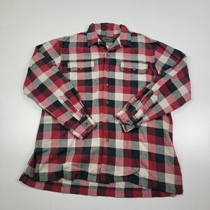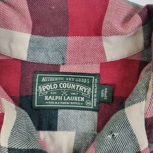 Vintage Ralph Lauren Polo Country (M) Flannel Button Up Cotton Shirt Red. Preloved and preowned shirt in good condition with some wear and discoloration shown but nothing major. Euc. See pictures for more details and measurements. Feel free to ask any questions.