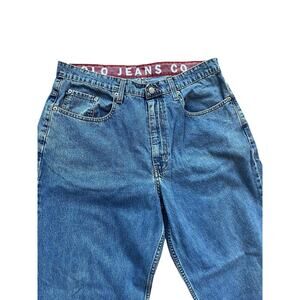 Vtg Ralph Lauren Polo Jeans Company Blue Denim Pants Mens Banner