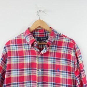 Vtg Ralph Lauren Shirt Mens Size Large Red Plaid Button Down Tartan Custom Fit 90s