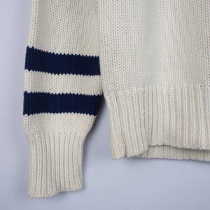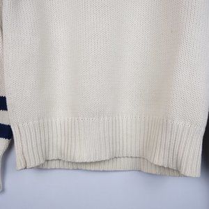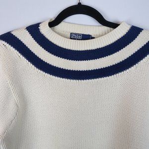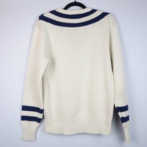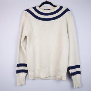 Vtg Ralph Lauren White & Blue Stripe University Tennis Crewneck Sweater, Size M