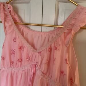 Vtg Rare OLGA Nightgown Long Sleeve Sweep Classic Light Pink Sheer Lace | Flawed