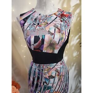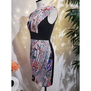 Vtg Rare Betsey Johnson Scuba Stretch Artsy Floral Sheath Dress Size 2 Funky Cocktail