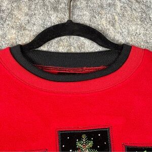 Vtg Red Black Embroidered Beaded Sparkly Christmas Tree/Holly Sweatshirt - Sz L