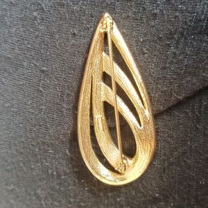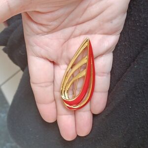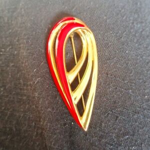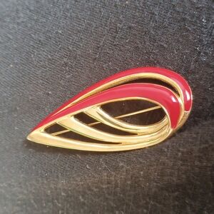 Vtg Red Enamel Ribbon Gold Tone Signed Trifari Brooch Pin